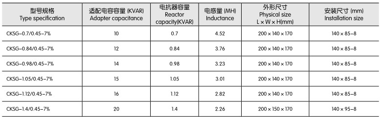 ● 低压三相串联电抗器CKSG 系列(14%) 参数表