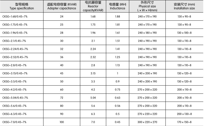● 低压三相串联电抗器CKSG 系列(7%) 参数表